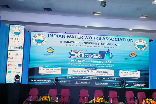 Indian Water Works Association—Coimbatore Centre hosted the 56TH ANNUAL CONVENTION OF IWWA, which was themed “Sustainable Management of Water and Waste Water and its Latest Developments.”